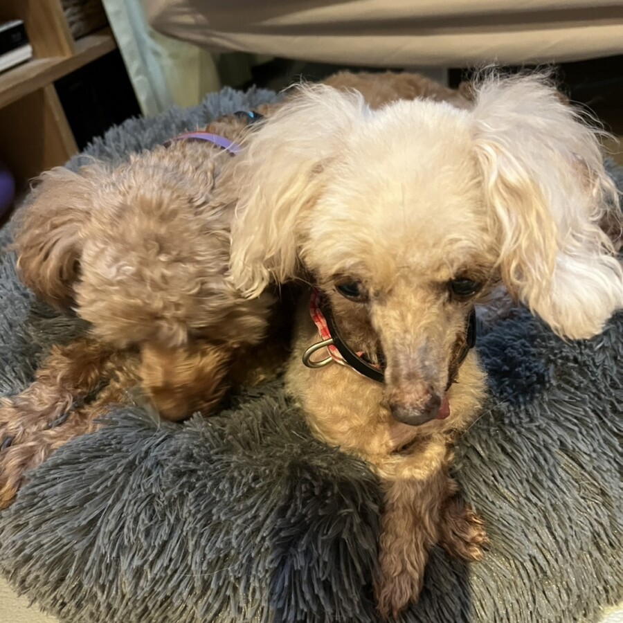 相変わらず、ドーナツクッションが大好きなパッちゃん。 なのに!!最近はルーシーに占領されがち。 それもエスカレートして、上から乗...
