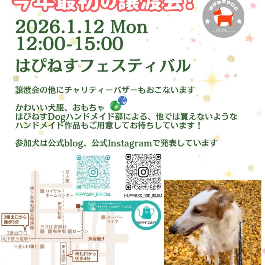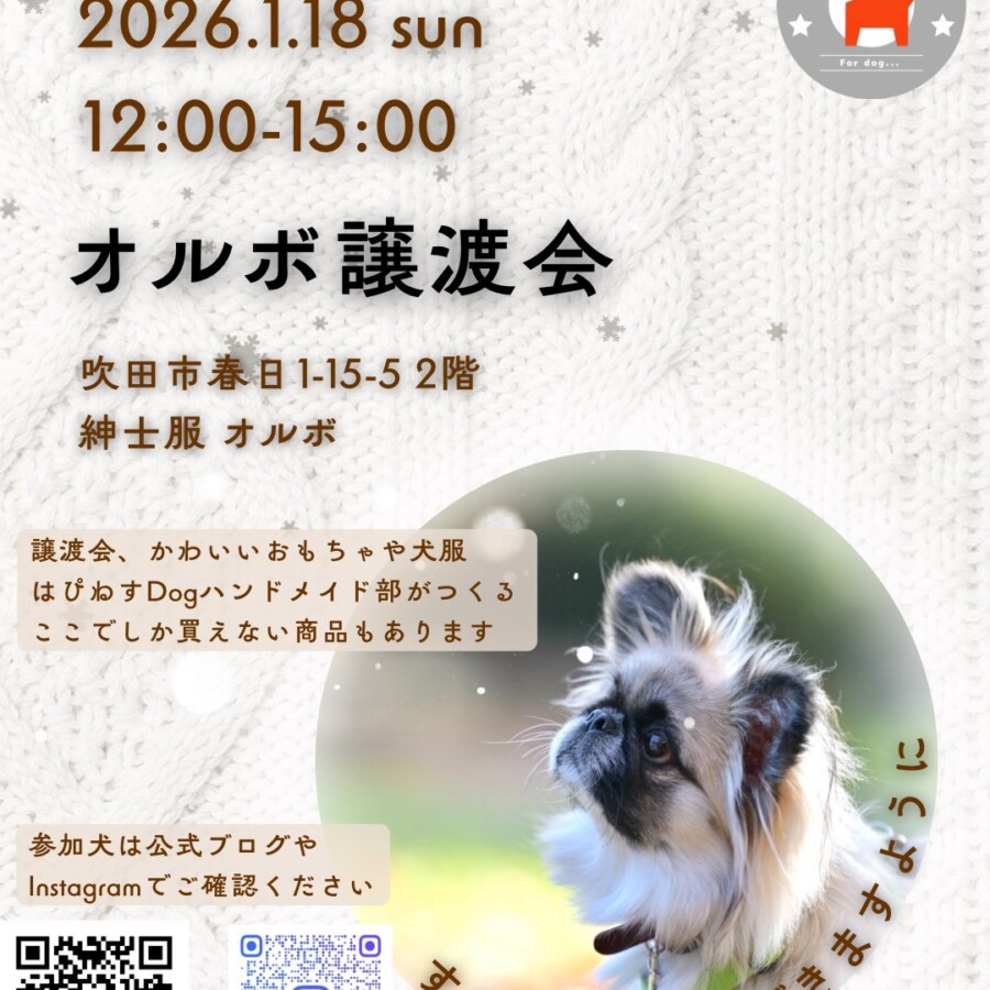連日の譲渡会!1/18(日)は吹田市オルボ譲渡会に参加します!
