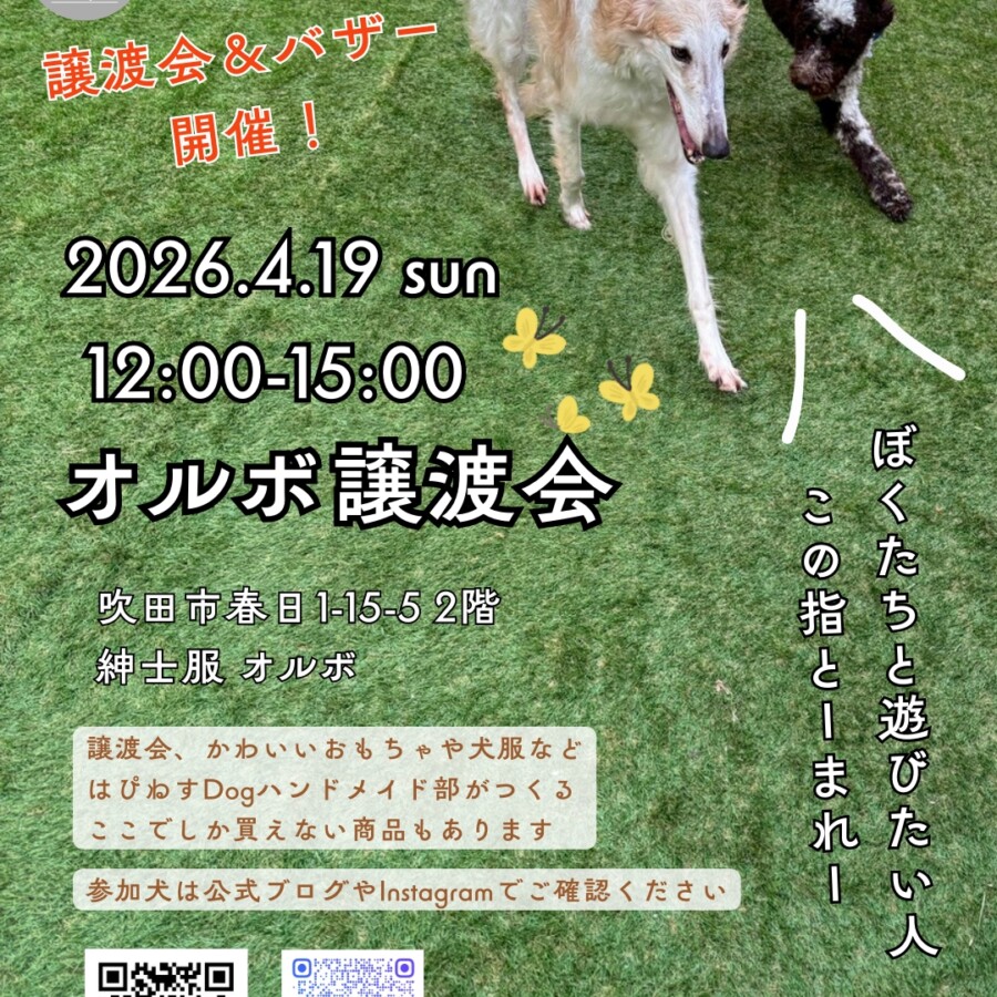 春の風が気持ちよく、お散歩日和が続いていますね🌸 4月19日(日)はオルボさんで譲渡会に参加します! 今月も素敵なわんこたちが集...