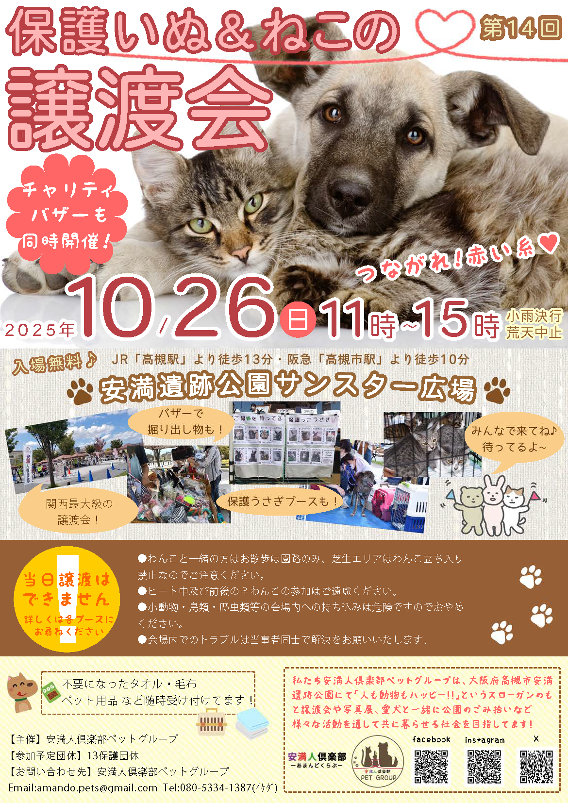 里親さんご希望の方、サポートスタッフへの参加希望の方、支援物資をご提供頂ける方、お問合せフォームよりご連絡ください。