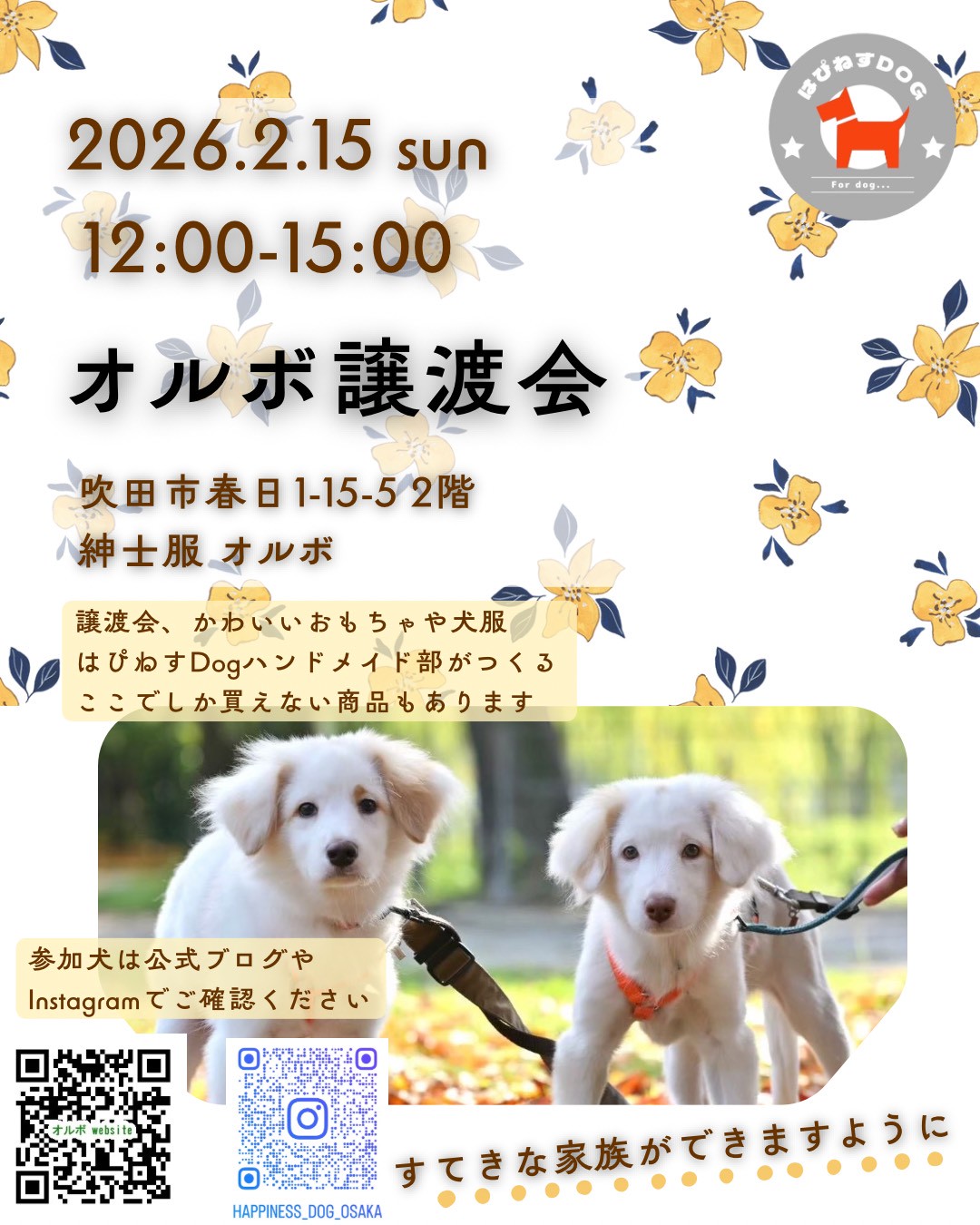 HAPPINESS☆SHOPでの収益は、NPO法人はぴねすDOGの運営資金となります。