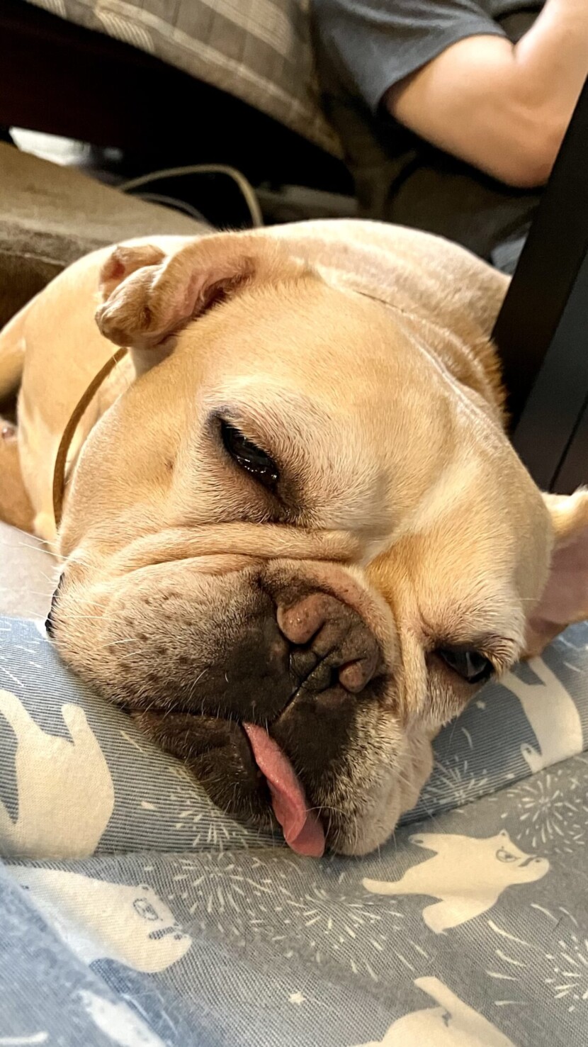 ペロっと少し出る舌と垂れてる片耳、ちょっといかついお顔、割と主張強めで、ちからも強め🤣
