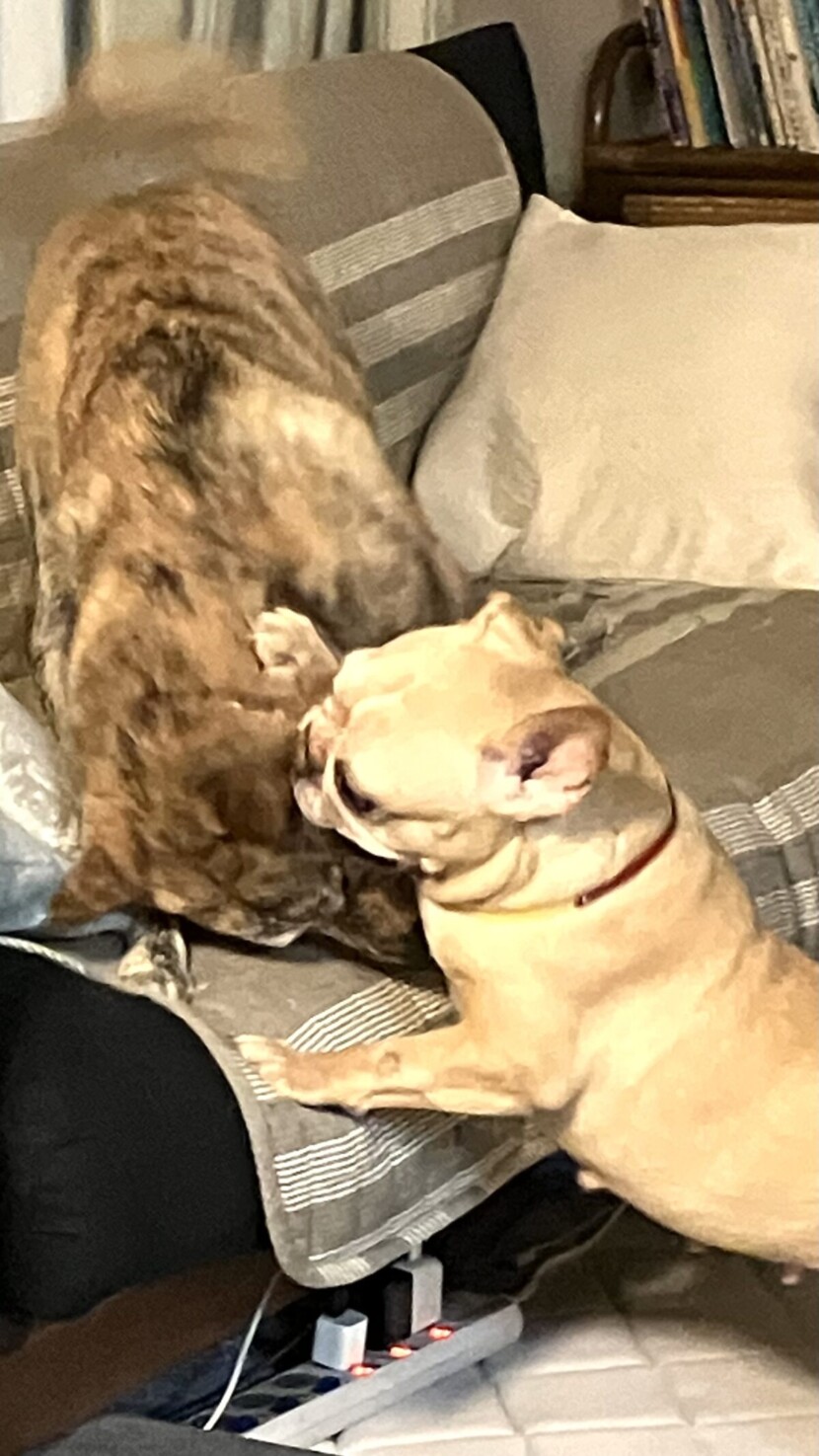我が家のもう1匹の預かりっ子、ごまラー油が付き合ってくれてます😊