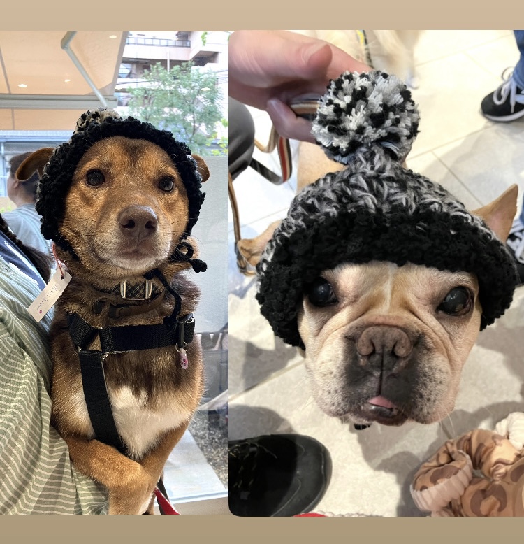 ビビリんちょクリプトも、ブサカワあんこも、可愛く⁉︎変身できちゃうアイテム、あったか帽子。これからの譲渡会で販売しますよ〜。是非ゲットしに来てね〜👍