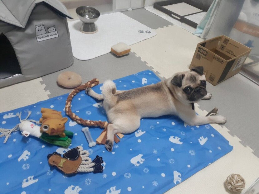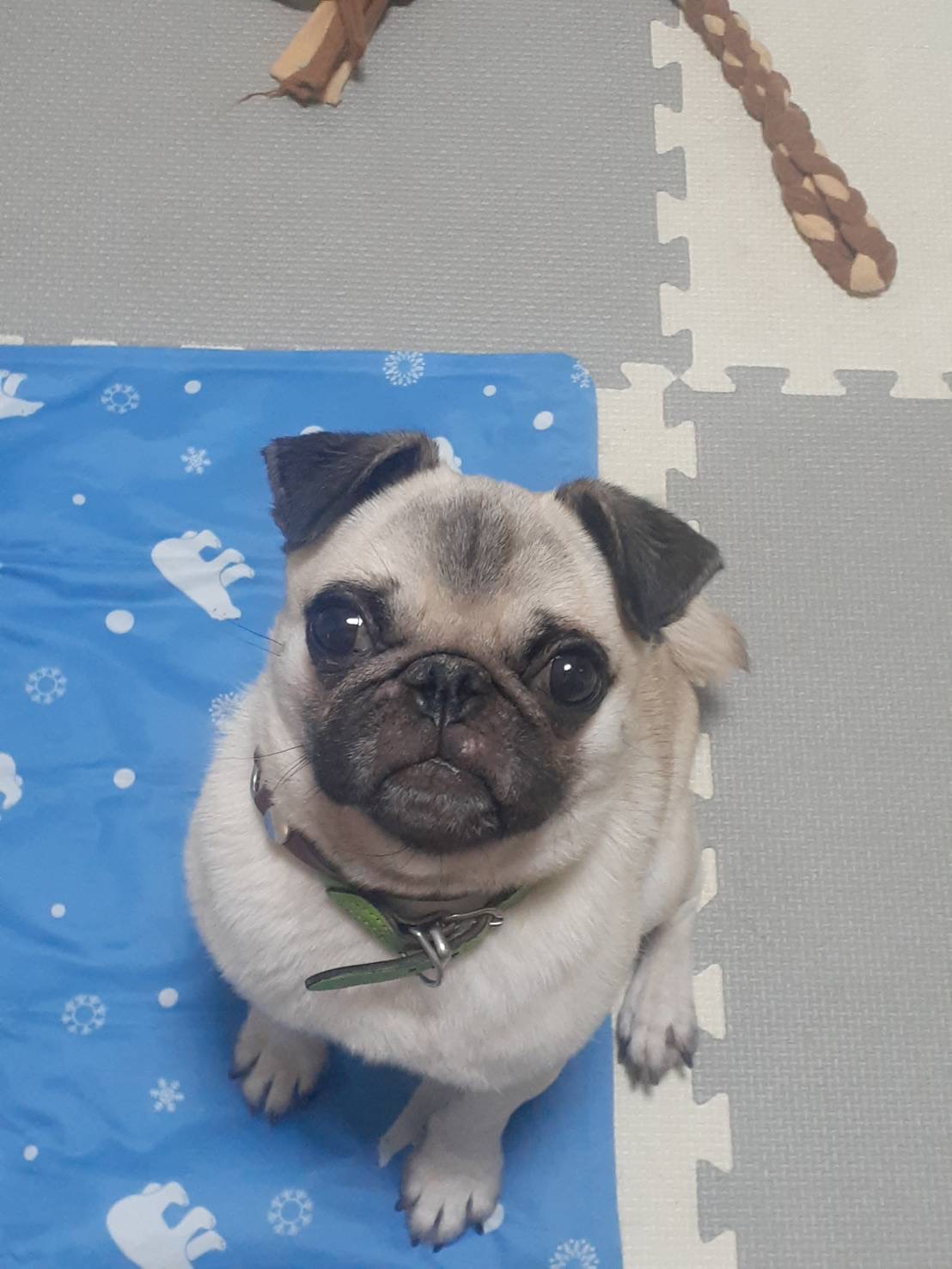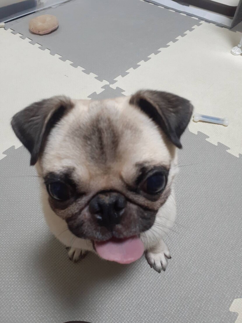 <パグのオス、若め>という情報しかなかったので、「どんな子くるやー」とドキドキ。