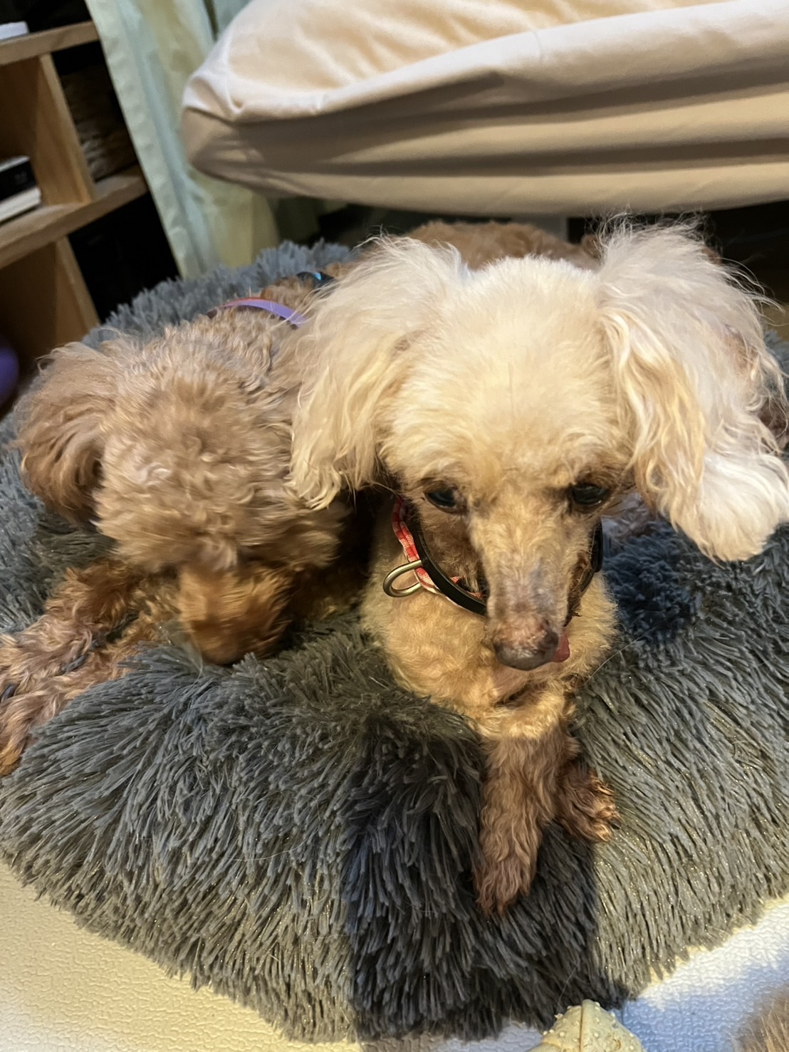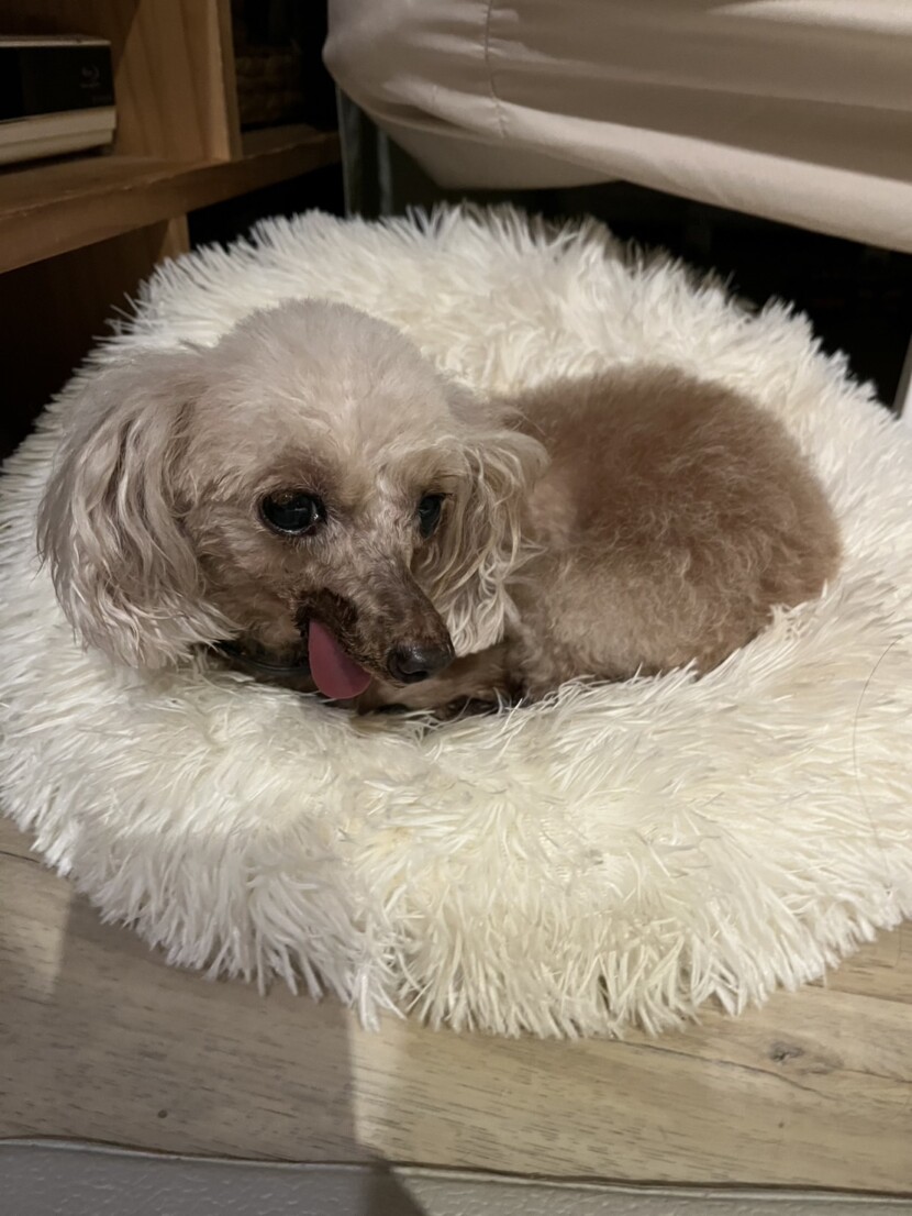 相変わらず、ドーナツクッションが大好きなパッちゃん。