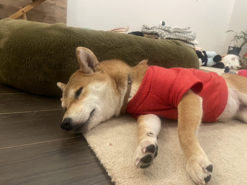 普段とは全く違うとっぺんは、元気が無いわけではありません。この子にとって外は怖い場所でしかないんです。特に、我が家は普段5柴がいますのでひとりっきりで外にいることは相当のストレスだと思います。