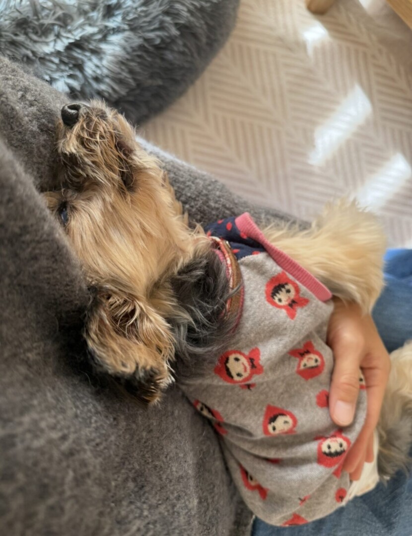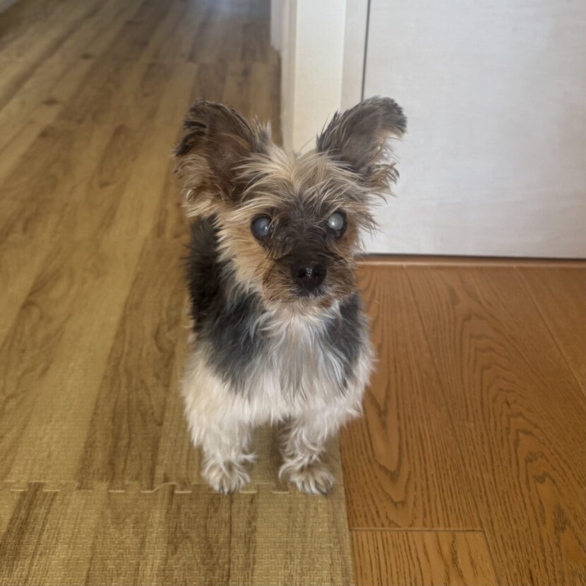 キッチンでワンって言ったら「美味しいのちょーだい」リビングでワンって言ったら「かまってちょーだい」膝に乗せると嬉しくて、お腹見せたり顔をこすりつけたり可愛い姿を見せるのに忙しい♪なんとも愛しいクルトンです