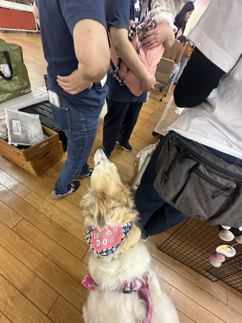 譲渡会中、お利口さんでしたが、常に誰かのポケットやトリーツポーチをクンクン、クンクン👃